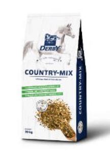 DERBY® Country-Mix jsou speciální müsli vyrobené z vysoce kvalitní směsi otevřených obilných komponentů bez ovsa. Složení DERBY® Country-Mix umožňuje optimální dodávku energie jak pro výkonné západní koně, pro sportovní, tak i rekreační koně, a to bez rizika přebytečných bílkovin. Díky upraveným obilovinám je DERBY® Country-Mix velmi snadno stravitelný a lze jej také použít jako koncentrované krmivo pro vysoký výkon.DERBY® Country-Mix je obzvláště vhodný pro koně citliví na oves. Cenné strukturální složky, jako je vojtěška, zlepšují proslinění krmiva a zvyšují dostupnost živin. Navíc vojtěška zpomaluje příjem krmiva.