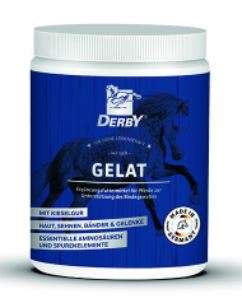 DERBY® Gelat se používá k zásobování koně esenciálními aminokyselinami jako je lysin, threonin a methionin a to v kombinaci s křemelinou. Aminokyseliny a křemelina jsou v těle potřebné k vytváření tkáně všeho druhu, jako jsou např. kolagenová vlákna šlach a vazů. Tyto látky tradičně slouží k vybudování a posílení pojivové tkáně a mineralizaci kostní dřeně. Deficitní situace, které lze kompenzovat prostřednictvím doplňku DERBY® Gelat, nastávají například během růstu nebo když je muskuloskeletální systém obzvláště zatěžován při práci, zraněním nebo korekcí polohy kopyta.