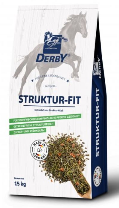 Stuktur Fit müsli stimuluje žvýkací aktivitu a tvorbu slin, což podporuje pozitivní gastrointestinální prostředí. Vzhledem ke sníženému obsahu škrobu a cukru je müsli zvláště vhodné pro koně s metabolickými problémy (např. Cushing, EMS, PSSM, laminitida). Tímto krmivem lze optimálně pokrýt nutriční požadavky koní, které by měly přijímat pouze malé množství koncentrovaného krmiva. Jablečné výlisky, které jsou obsaženy ve směsi, jsou nejen chutné, ale také poskytují cenné pektiny, které mají pozitivní vliv na trávicí systém.