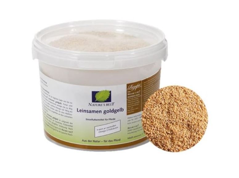 Leinsamen Goldgelb od Nature's Best je lněné semínko, které lze snadno smíchat s obvyklým krmivem v množství až 100 g na koně na den. Recepty na mashe jsou díky němu obzvláště chutné a jsou vítaným zpestřením i v zimě.