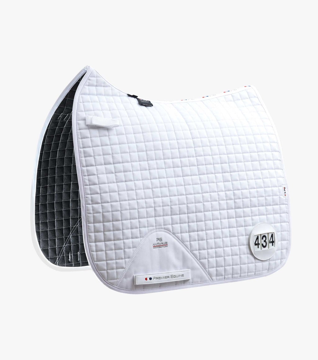 Technicky vyspělá soutěžní drezurní podsedlová dečka s praktickými nášivkami na číselné displeje, ideální pro moderní drezurní jezdce.