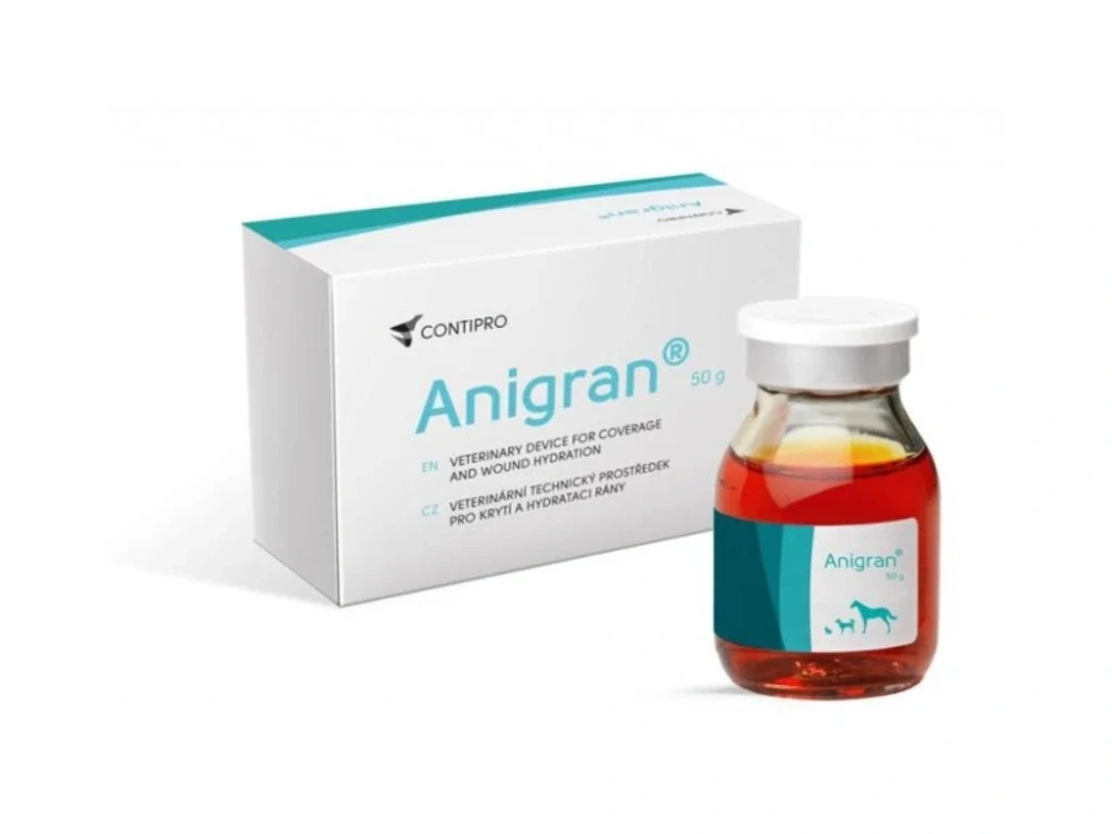 Anigran je veterinární přípravek ve formě gelu určený k ošetření špatně se hojících, chronických, infikovaných, ale i akutních ran u všech druhů zvířat, zejména u psů a u koní. Vynikající vlastnosti Anigranu zajišťují dvě aktivní látky – kyselina hyaluronová a jódový komplex.