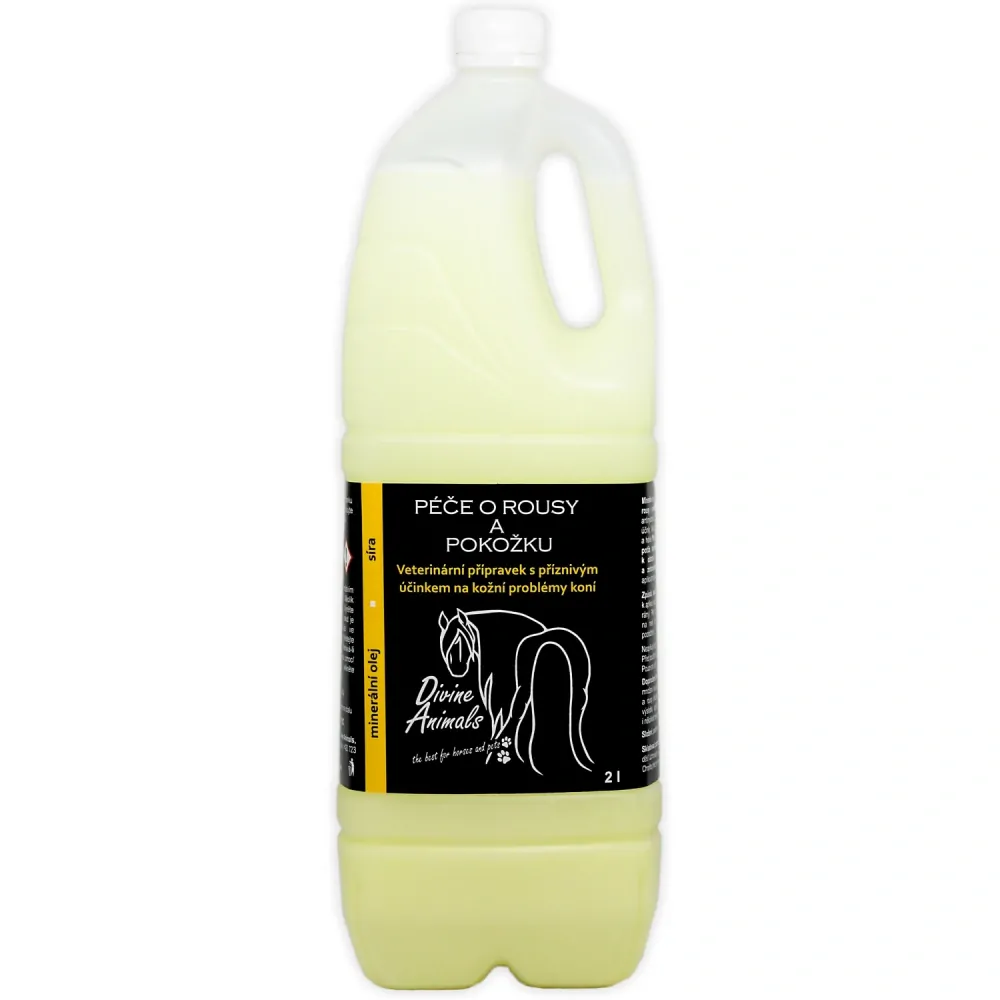 Minerální olej se sírou pro péči o koňské rousy a pokožku - přípravek na stejné bázi jako známý pig oil. Síra má antibakteriální, antimykotické, antiparazitární a keratolytické účinky. Minerální olej udržuje rousy čisté a hebké. Přípravek příznivě působí na kožní potíže (končetinový svrab, plísně atd.), nepříjemné svědění a napomáhá k odstranění drobných stroupků, lupů a zrohovatělé kůže. Přípravek je možné aplikovat na pokožku kdekoliv na těle.