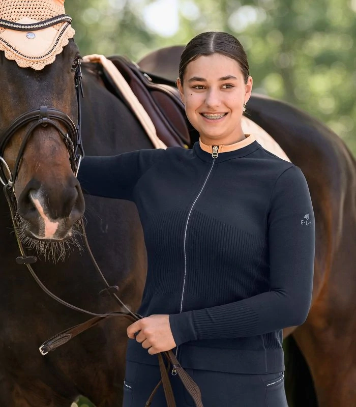 - Vysoce kvalitní přední zip v kovovém vzhledu s dekorativním E· L·T
