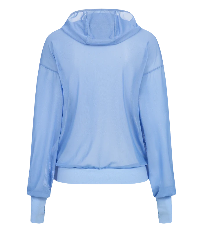 Ultralehká mikina z power mesh, ideální pro ochranu proti muchám v teplých teplotách- Volný střih- lem a manžety z materiálu jersey - Extra dlouhé manžety s integrovanými otvory na palce - Pevná kapuce s elastickým lemem a otvorem pro copánek- E· L­· T logo   Vnější materiál: 92 % poly... celý popis
