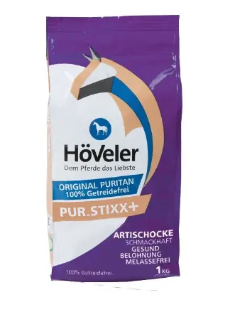 Bez obilí, melasy a umělých přísad nabízí Höveler PUR.STIXX + ARTICHOKE vašemu koni chutnou odměnu. Šetrně sušené trávy a byliny obsahují řadu životně důležitých látek a umožňují tak přirozené krmení.
