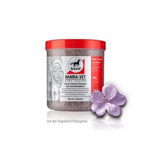 Hamba-Vet obsahuje Cape Pelargonium, fialově kvetoucí druh pelargónie, který se používá k výrobě známých léků na respirační infekce. Hamba-Vet obohacený o bylinky, jako je přeslička, kopřiva, podběl a lékořice, aktivuje imunitní systém a chrání před kašlem.