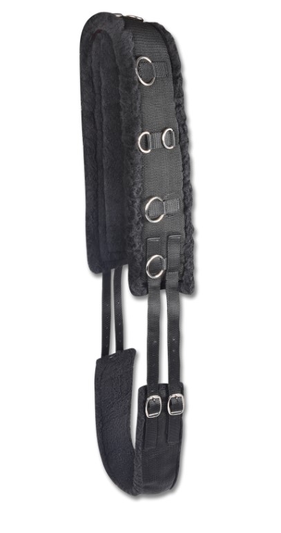 Obřišník z pevného polypropylenu, měkce polstrovaný plyšovým fleecem. S 12 kroužky pro individuální vedení.