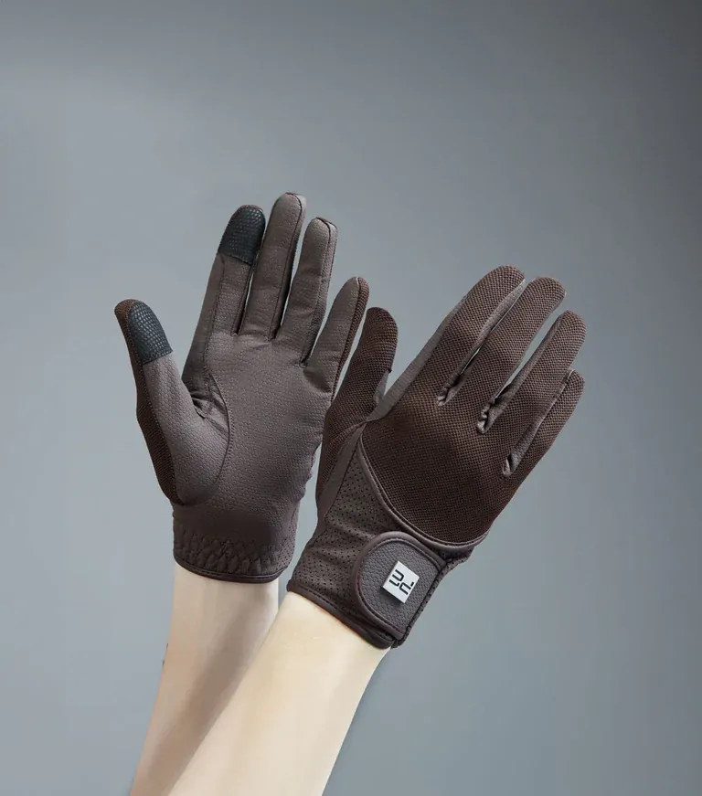 Dlaň rukavice je vyrobena z lehké syntetické kůže, která poskytuje optimální úchop otěží. Panel dotykové obrazovky na ukazováčku a palci umožňuje používat telefon bez sundání rukavic. Tyto jezdecké rukavice jsou doplněny Velcro zapínáním s elegantním odznakem značky PE a jsou ideální pro vaše každodenní jezdecké aktivity a soutěžní použití.