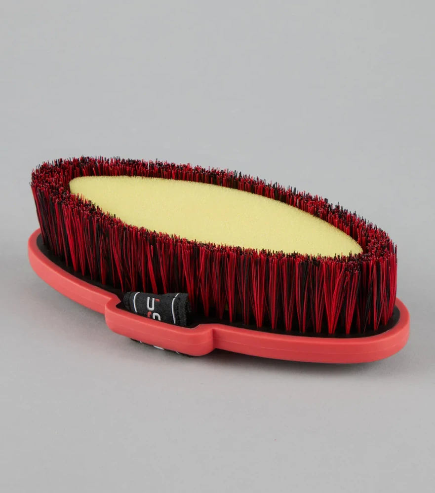 Když je mokrý, centrální houba vylučuje vodu a nasává pot, zatímco vnější štětiny jemně pomáhají pracovat v mýdlové vodě a odstraňují nečistoty a skvrny z pokožky. Ujistěte se, že jste svého koně po použití důkladně opláchli čistou vodou.