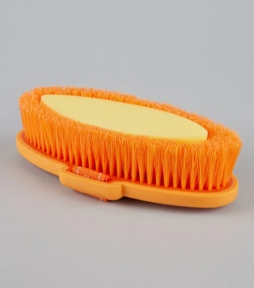 Když je mokrý, centrální houba vylučuje vodu a nasává pot, zatímco vnější štětiny jemně pomáhají pracovat v mýdlové vodě a odstraňují nečistoty a skvrny z pokožky. Ujistěte se, že jste svého koně po použití důkladně opláchli čistou vodou.