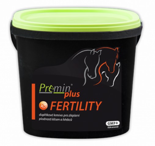 Doplňkové krmivo Premin® plus FERTILITY je určeno pro plemenné klisny a hřebce na zlepšení reprodukčních ukazatelů. Kombinace vitaminu E a selenu v organické formě má pozitivní vliv na reprodukční orgány klisen i hřebců, podílí se na tvorbě vajíček a spermií, zvyšuje oplodňovací schopnost semena a libido u hřebců. Selen také příznivě působí na produkci mléka a zdravotní stav mléčné žlázy. Betakaroten pozitivně ovlivňuje funkci vaječníků a proces reprodukce. Extrudovaný len pozitivně ovlivňuje zabřeznutí a snižuje procento embryonálního odúmrtí. Konjugovaná kyselina linolová patří do skupiny omega-6 mastných kyselin a má mnoho nepostradatelných funkcí v organizmu. Mimo jiné urychluje regenaraci a dlouhodobě zlepšuje zdravotní stav a reprodukční schopnosti koní. Flavonoidy v ostropestřecovém expeleru mají především hepatoprotektivní účinky a zlepšují celkový zdravotní stav koně. U hřebců krmených většími dávkami jádra snižují negativní vliv metabolitů vznikajících v těle zvířat.