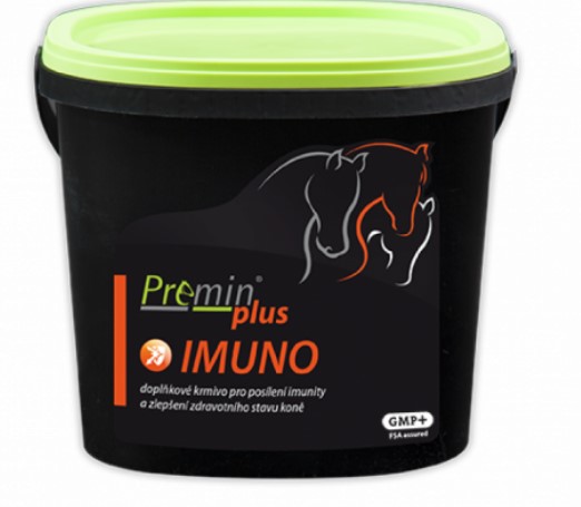 Premin® plus IMUNO je minerální krmivo určené pro koně v zájmovém chovu pro zlepšení celkového zdravotního stavu využitím přirozených antioxidantů vitamínů E a C. Obsahuje výtažky z česneku a skořice, které mimo jiné zlepšují krevní obraz a mají repelentní účinky. Cabanin (výtažky z révy vinné) podporuje rozvoj pozitivní mikroflóry ve střevech. Selen potřebný pro správnou funkci reprodukčních orgánů je uhrazen organicky vázanou formou pro lepší využití v organismu.