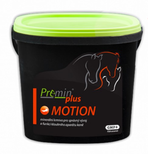 Premin® plus MOTION je minerální krmivo se zchutňovadlem je určeno pro správný vývoj a funkci kloubů koně. Obsahuje chondroitin a glukosaminsulfát, látky přirozeně se vyskytující v chrupavce a zajišťující její pružnost. MSM předchází a potlačuje projevy poškození kloubní chrupavky.
