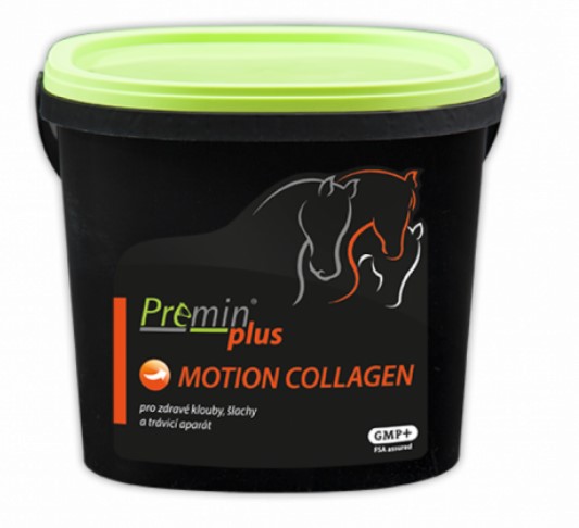Doplňkové krmivo Premin® plus MOTION COLLAGEN je určeno pro všechny kategorie koní, především pak pro koně ve sportovní nebo dostihové zátěži. Je vhodné pro koně, kteří mají problémy s pohybovým aparátem a taktéž pro koně trpící žaludečními vředy. Obsahuje vysoce účinný hydrolyzovaný kolagen (přirozená součást všech pojivových tkání) a protizánětlivě působící MSM (methylsulfonylmetan) a vitamín C. Premin® plus MOTION COLLAGEN je vhodný zejména při akutních kloubních potížích.