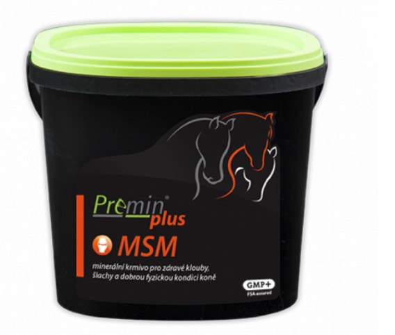 Premin® plus MSM se jako přirozená forma organické síry podílí na tvorbě základních aminokyselin methioninu a cysteinu, je důležitý pro tvorbu kolageních vláken, napomáhá eliminaci počínajících zánětů kloubů a šlach, zmírňuje alergické reakce a chrání organismus před negativními účinky volných radikálů, zvyšuje vitalitu organismu Pozitivně se projevuje při léčbě zánětu škáry a střelky kopytní. Zlepšuje kvalitu srsti. Zmírňuje bolesti svalů a kloubů. Premin® plus MSM je určen pro všechny kategorie koní zejména pro koně ve sportovní nebo dostihové zátěži.