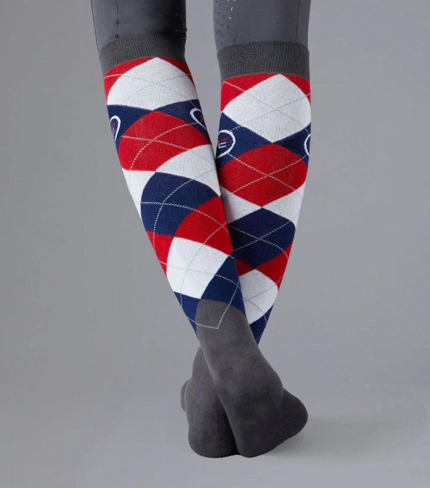 Technická směs bavlny, nylonu a elastanu zajišťuje ideální odvod vlhkosti, pohodlný elegantní střih a bezešvou měkkou stélku v klasickém kostkovaném designu. Perfektní doplněk do letošního zimního jezdeckého šatníku.