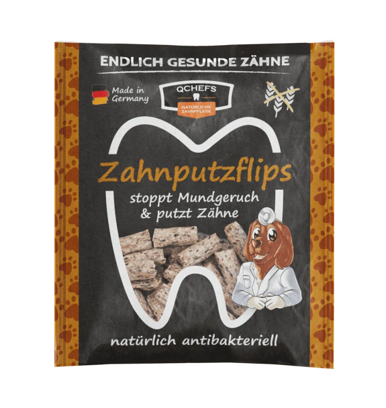 Polštářky na čištění zubů pro malé psy Zahnputzflips od QCHEFS je prémiový pamlsek nejen pro péči o zuby vašeho psa. Speciálně vyvinuty pro malá plemena psů do 5kg.