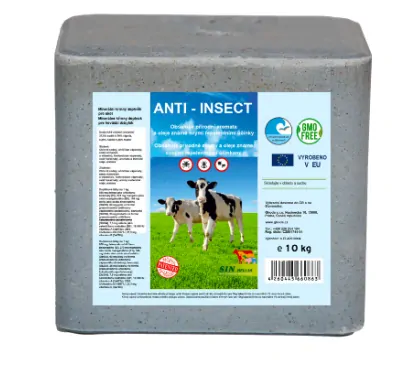 Anti-Insect je patentovaný minerální liz s přírodními látkami, které účinně odpuzují hmyz a parazity. Může pomoci v boji s dotěrným hmyzem, klíšťaty, blechami a vnitřními parazity. Zvíře je navíc zásobeno životně důležitými minerály, stopovými prvky a vitamíny dle individuálních potřeb jedince.