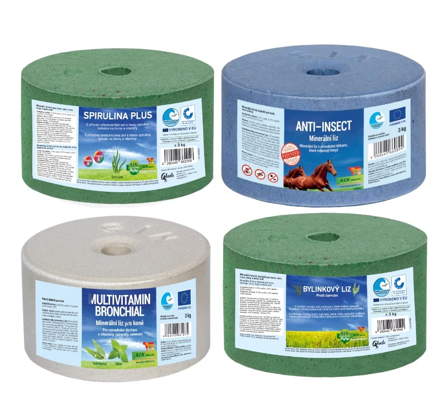 Cenově zvýhodněné balení 4 bylinných minerálních lizů, které ocení každý kůň.