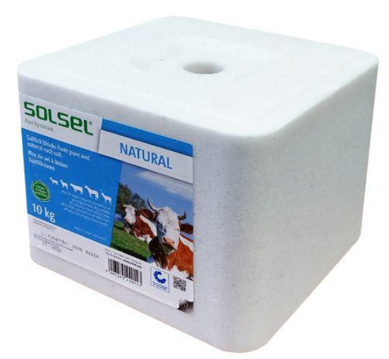 Solný liz Solsel Natural pro koně, dobytek, ovce, kozy a zvěř - schváleno pro využití v ekologickém zemědělství. Liz z čisté vakuové soli, pro ideální a jednoduchý způsob, jak doplnit krmení hovězího dobytka, ovcí, koz, koní, srn a vysoké zvěře o soli a přírodní minerální látky.