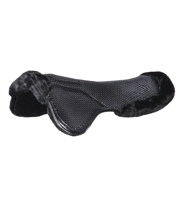 Vysoce kvalitní gelová podložka se syntetickou kožešinou. Poskytuje lepší přilnavost, snižuje tlak a tím odlehčuje hřbetu koně. S kožešinou na spodní straně a kožešinovým věncem na přední a zadní straně. Větrací otvory v gelové části zajišťují optimální prodyšnost.