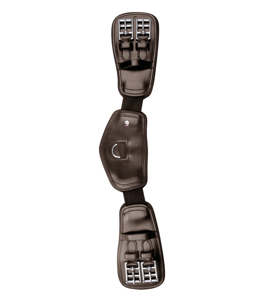 Měkce vyztužený, anatomicky tvarovaný krátký podbřišník vyrobený z kvalitní kůže. Dvě elastické vložky poskytují větší volnost pohybu při nádechu a výdechu a působí proti nutkání používat bezpečnostní pásy. Tři kožené části jsou měkce polstrované a díky velké kontaktní ploše nabízejí mimořádně dobré rozložení tlaku. Bez elastických koncovek pásků, nerezových přezek a D-kroužku.