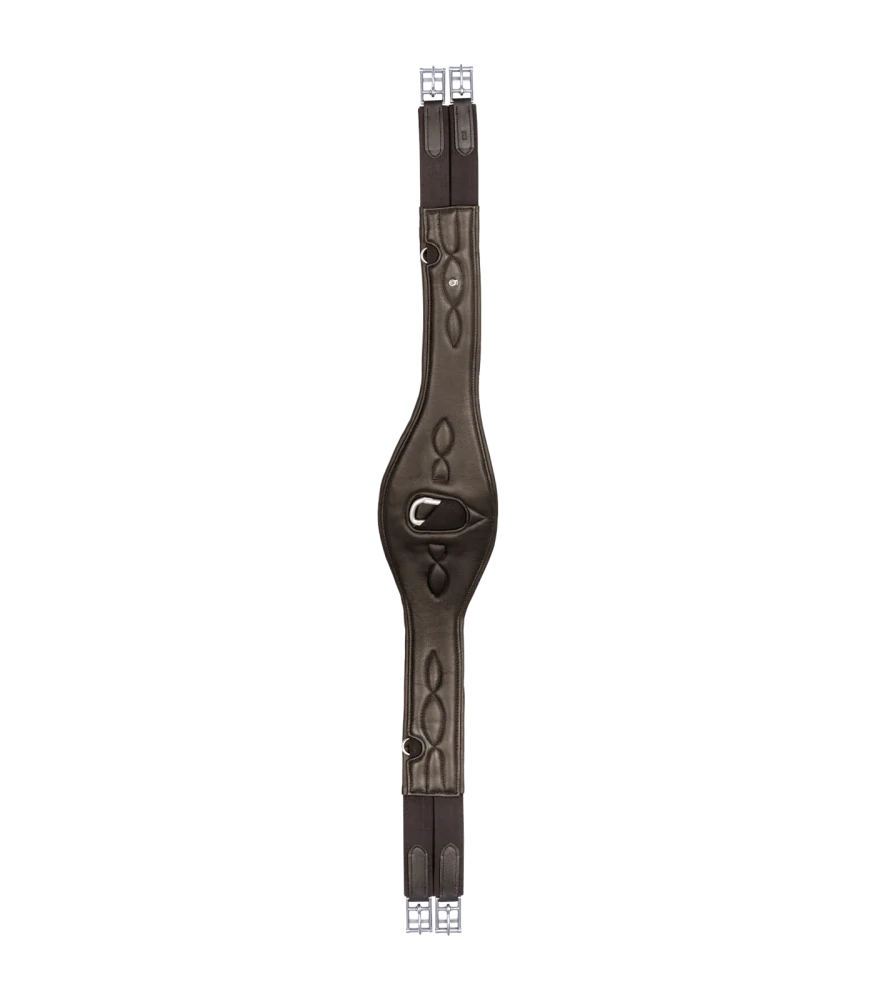 Měkký kožený podbřišník s ideálním rozložením tlaku díky širokému hrudnímu plátu. Pohodlně přiléhá k tělu koně a nabízí tak optimální pohodlí při nošení. Na 3D kroužky lze připevnit všechny pomocné otěže nebo hrudní pancíře. S válečkovými přezkami z nerezové oceli. S gumou.