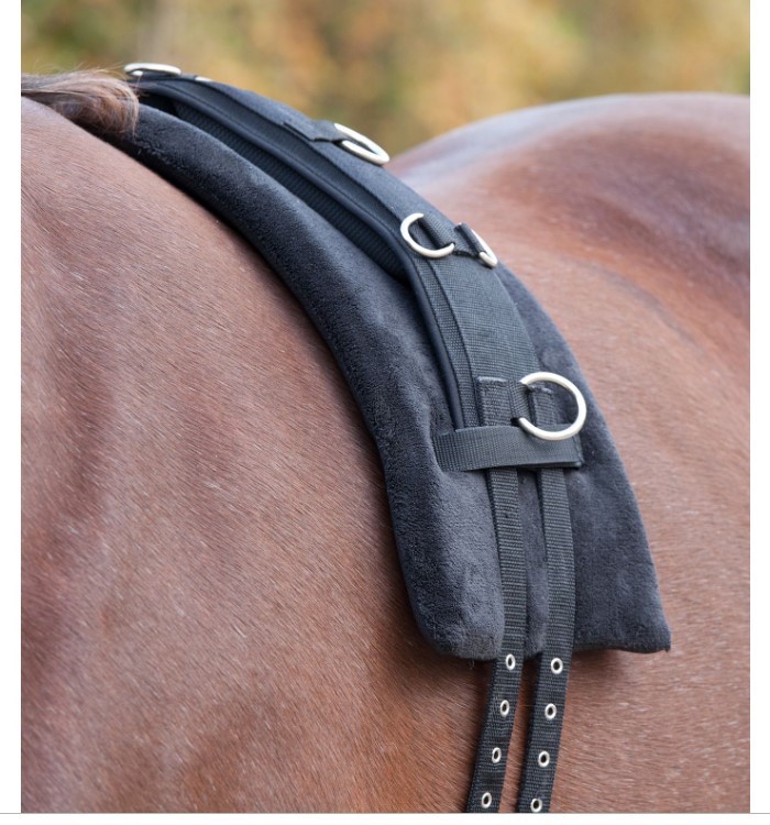 Výplň z měkké paměťové pěny se dokonale přizpůsobí hřbetu koně. Velcro upevňovací prvky zabraňují prokluzování. Větrací otvory na pogumované straně zajišťují dobrý odvod tělesného tepla.