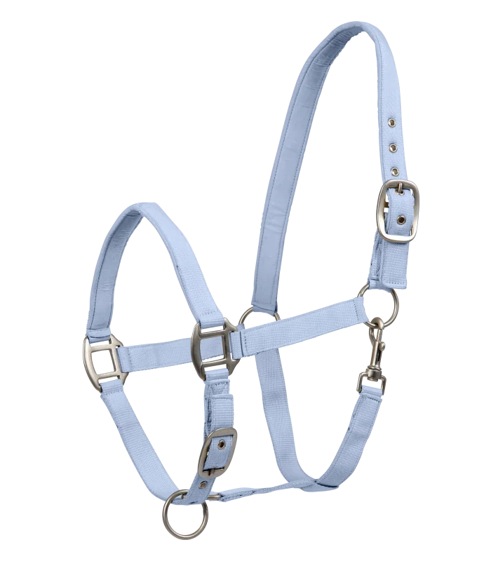 • Hladká ohlávka s jemně podšilým nosem. Multi nastavitelný popruh. Matně barevné kování.