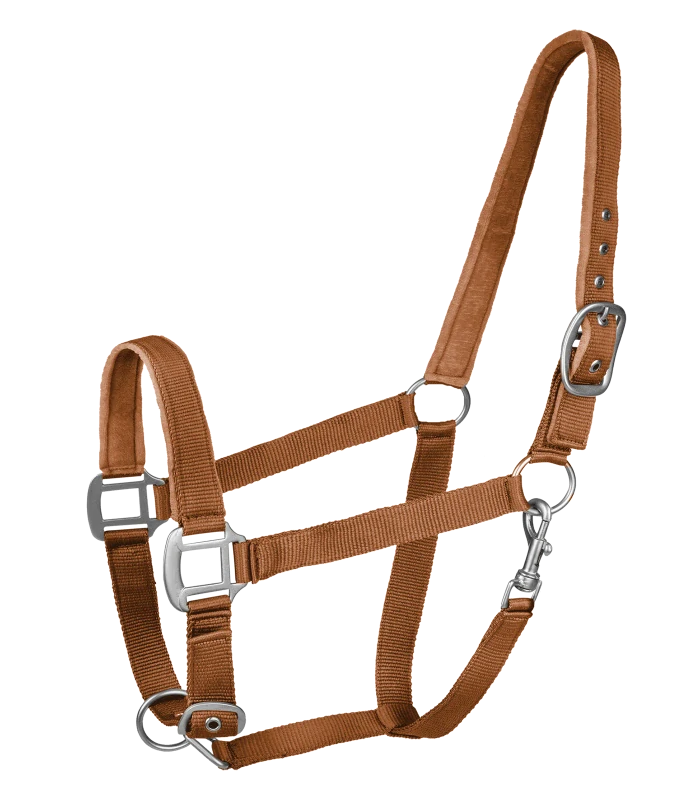 • Hladká ohlávka s jemně podšilým nosem. Multi nastavitelný popruh. Matně barevné kování.