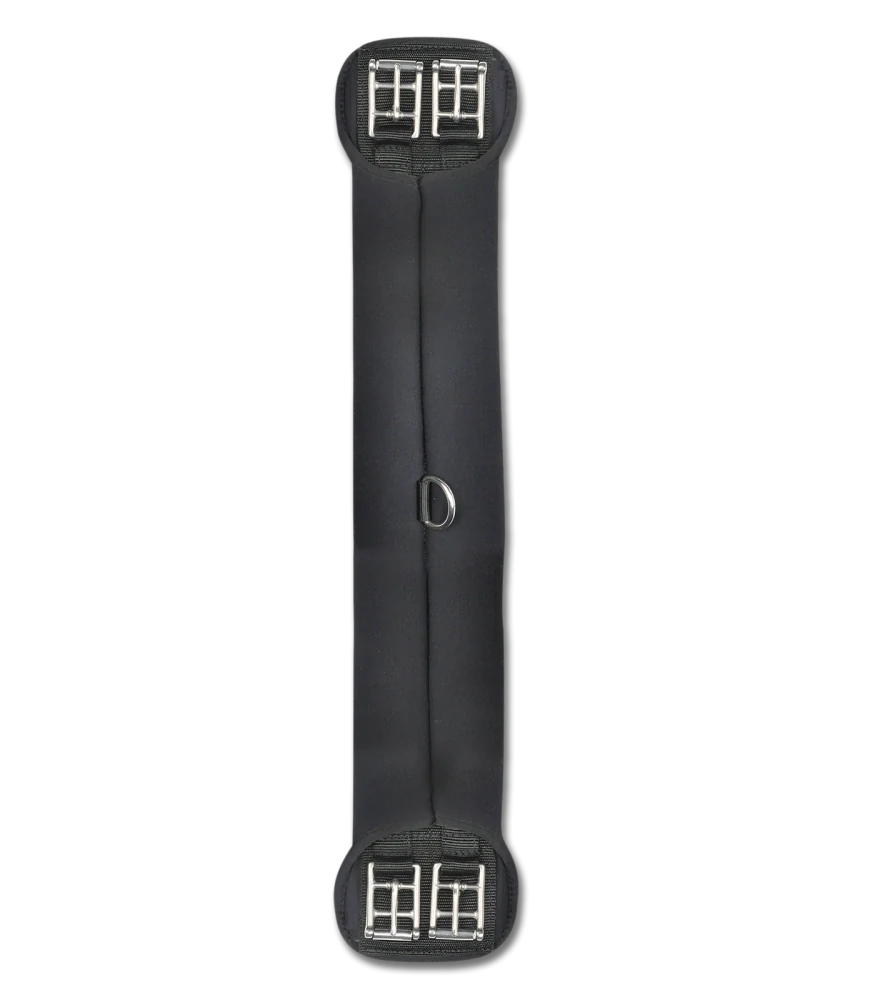 Velmi měkký a silný materiál se optimálně přizpůsobuje pohybům koně a chrání tak před odřením a otlaky. S válečkovými přezkami z nerezové oceli a kroužkem pro pomocné otěže uprostřed. Bez elastické vložky.