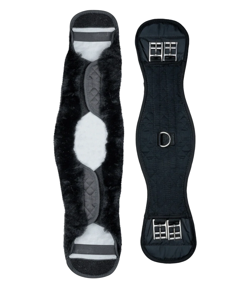 Vysoce kvalitní anatomický podbřišník s pravou jehněčí kůží pro optimální ochranu proti odření a otlakům. Potah z jehněčí kůže lze snadno sejmout a vyprat díky Velcro zapínání. S D-kroužky a válečkovými přezkami z nerezové oceli, bez gumy.