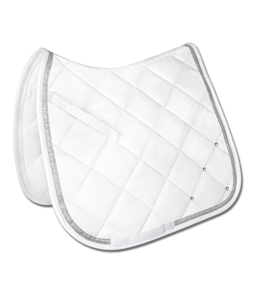 Elegantní, vysoce kvalitní podsedlová dečka s třpytivou stuhou. Díky dodatečným kamínkům je tato podsedlová dečka skutečným poutačem. Funkční spodní strana zajišťuje optimální prodyšnost. 8 mm pěna a vata 250 g/m² zajišťují nejlepší rozložení tlaku.