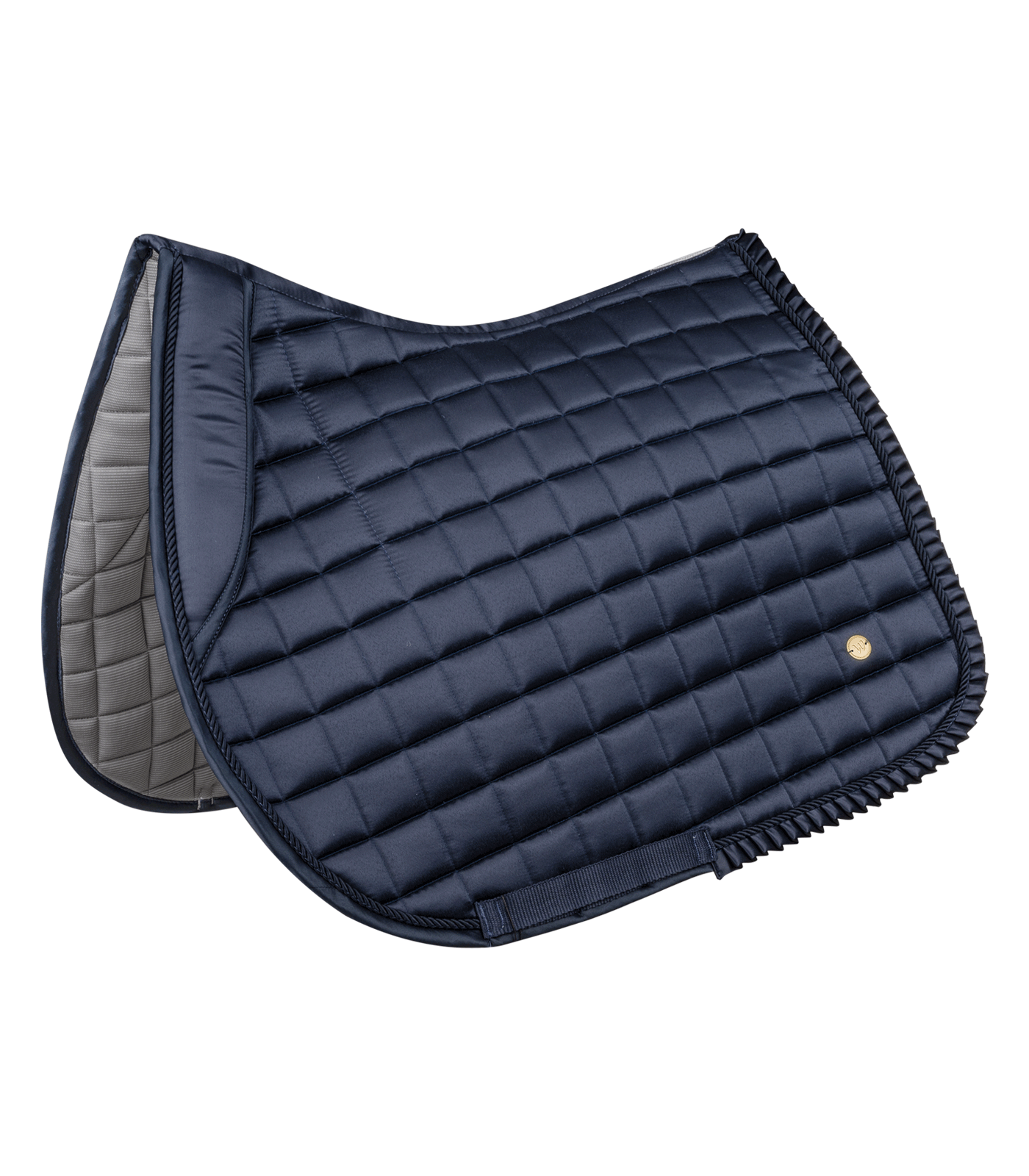 Elegantní podsedlová dečka s hedvábným efektem a volánovým lemováním. Pomocí dorazového polštáře a jednoduchého nebo děleného poutka na popruh je zabráněno sklouznutí sedla. Bambusová podšívka absorbující pot nabízí zvláštní pohodlí.
