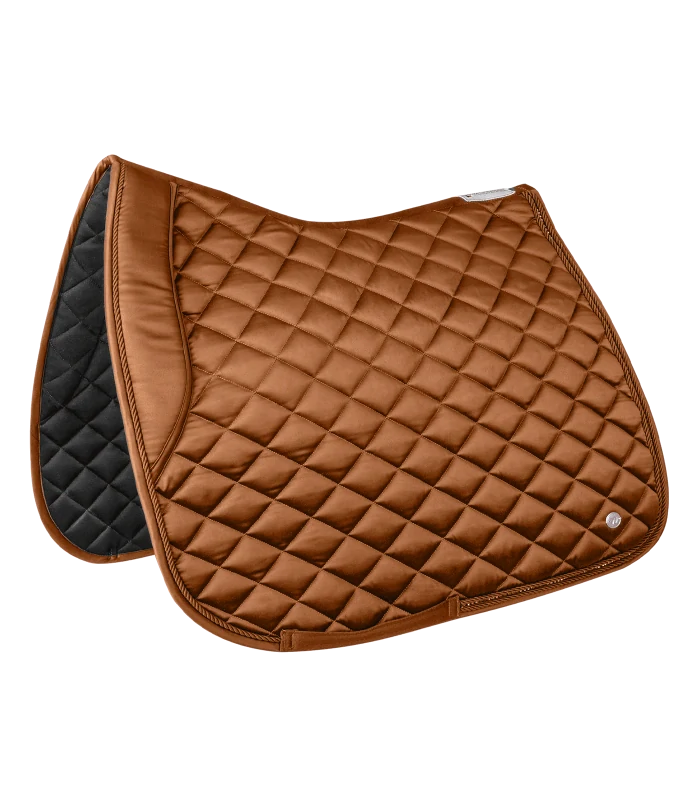 Elegantní, vysoce kvalitní podsedlová dečka z lesklého materiálu. Zvláštním detailem je třpytivý kamínkový pásek mezi dvěma ozdobnými šňůrkami. Logo je reprezentováno ve formě stříbrné kovové desky. Ladí s naší nepálskou kolekcí.   Vnější materiál: 100% polyester. Podšívka: 100 % polyest... celý popis