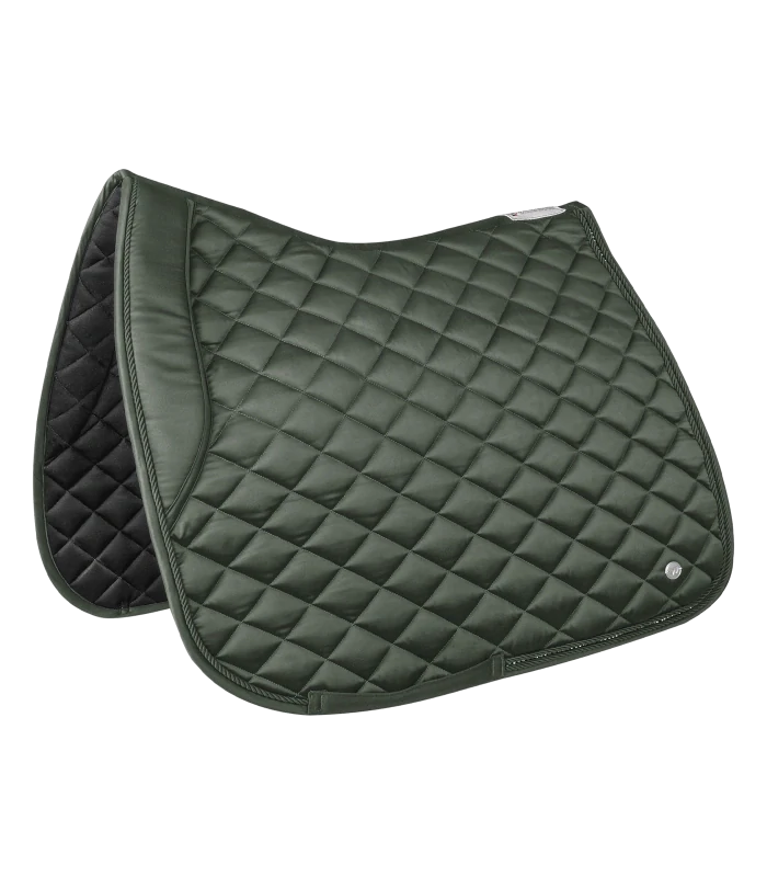 Elegantní, vysoce kvalitní podsedlová dečka z lesklého materiálu. Zvláštním detailem je třpytivý kamínkový pásek mezi dvěma ozdobnými šňůrkami. Logo je reprezentováno ve formě stříbrné kovové desky. Ladí s naší nepálskou kolekcí.   Vnější materiál: 100% polyester. Podšívka: 100 % polyest... celý popis
