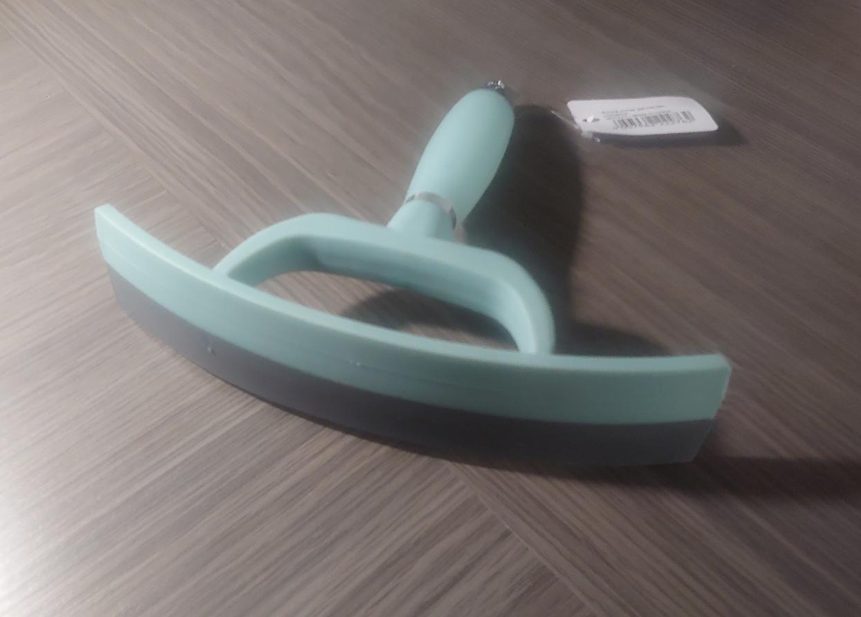 Stěrka na vodu a pot s gumovým okrajem. Gelová rukojeť se ergonomicky přizpůsobí dlani vaší ruky.