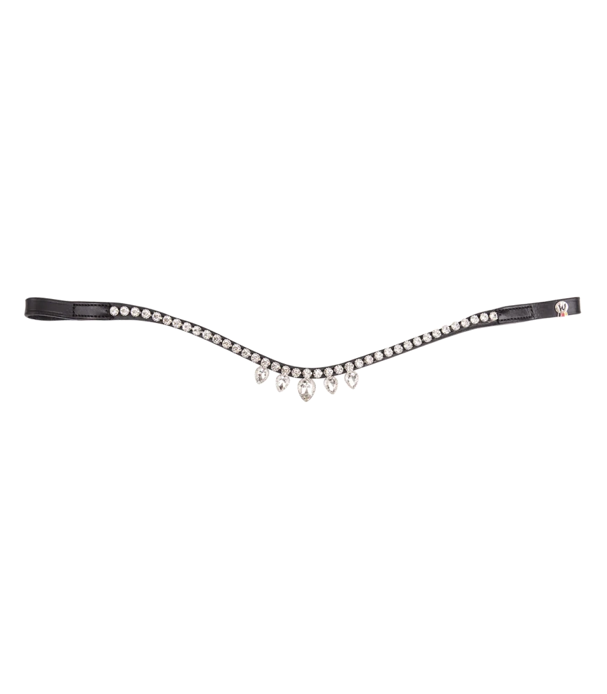 Dekorativní, zakřivená čelenka s kamínky ve tvaru slzy.