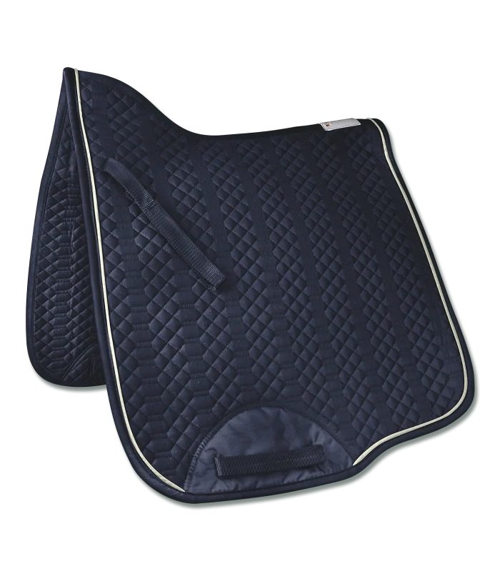 Anatomicky tvarovaná drezurní podsedlová dečka s extra vysokou volností v kohoutku. Poutka na opasek lze otevřít pomocí pásku na Velcro. Výztuž zabraňuje rychlému opotřebení. 13 mm pěna zajišťuje optimální vyrovnání tlaku.   Vnější materiál: 65% bavlna, 35% polyester. Podšívka: 65 % bavl... celý popis